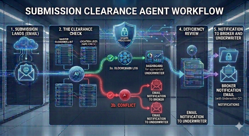 AI Agent scans master clearance list to check for conflicts. If there are no previous submission it then checks the SOV line by line to see if the schedule  was submitted under a different name.